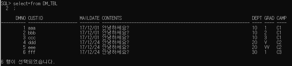 작업3. 샘플데이터를 참조하여 DM발송내역정보와 고객정보테이블에 데이터를 생성하시오.